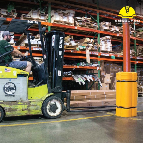 The McCue Shock Absorbing Rack Guards protect pallet racking from forklift impacts. A durable solution that reduces damage, improves safety, and extends rack lifespan.