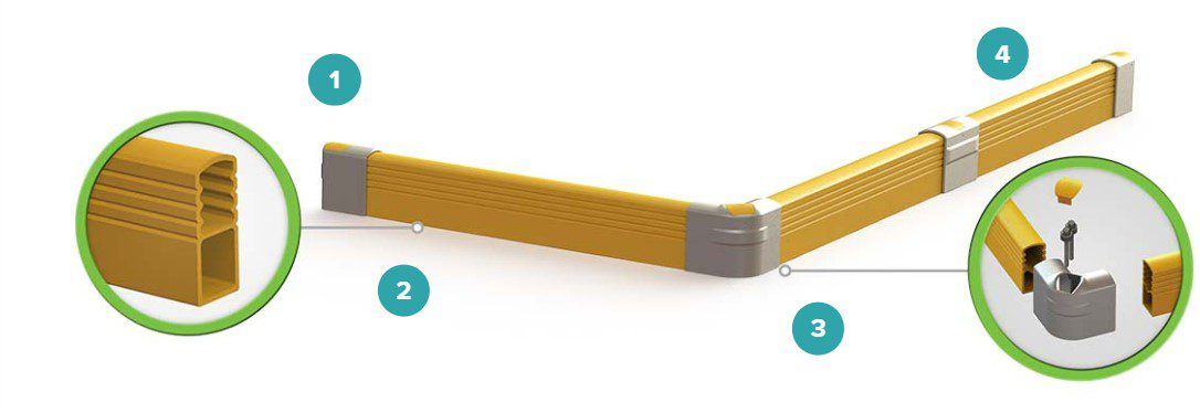 Pair ends, mids and corners with a cut-to-length rail for a protective system that can be configured to protect anything