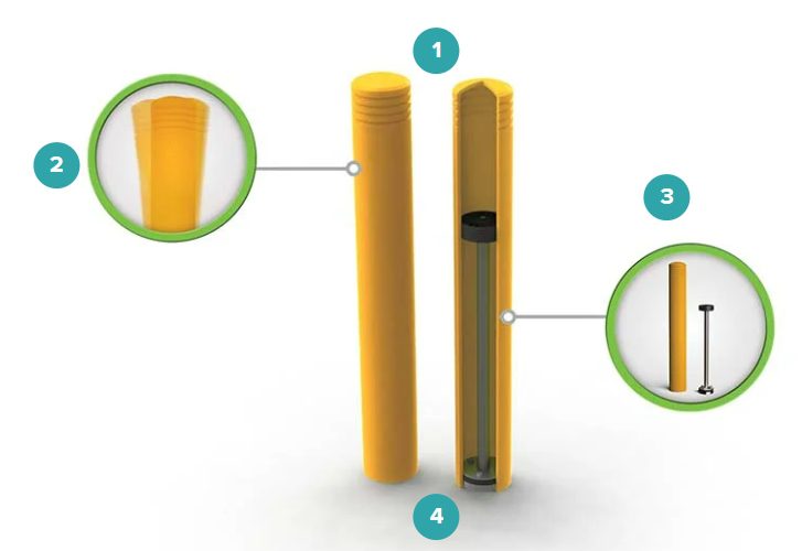 The FlexCore Bollard is engineered to absorb and deflect impact, protecting vehicles, equipment, and facility structures from collision damage in busy industrial environments.